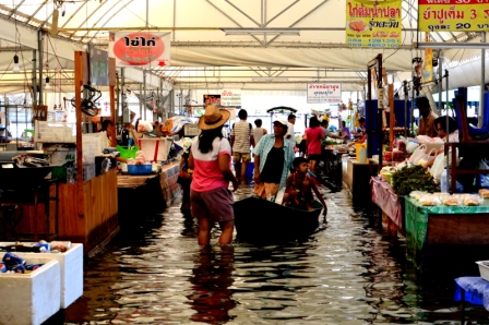 ตลาดน้ำโกสุมรวมใจ ของแท้ต้องพายเรือ หรือเดินลุยน้ำซื้อของ