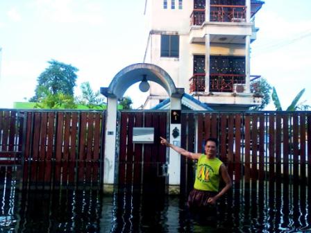 ขนาดน้ำลดบ้างแล้ว หน้าบ้าน(โกสุม ซ.14) ยังเหลือ เมตรหนึ่ง