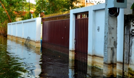 น้ำลึกเกินครึ่งเมตร ดูเรือหน้าบ้านแกซิครับ วิ่งฉิวเลยเหมือนอยู่ในคลอง