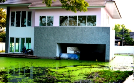 ถนน(คลอง)หลังบ้านครับ เวลาโฆษณาต้องบอกว่า ด้านหน้าติดทั้งถนนและคลอง ด้านหลังก็ติดถนนและคลอง คงขายได้ราคา
