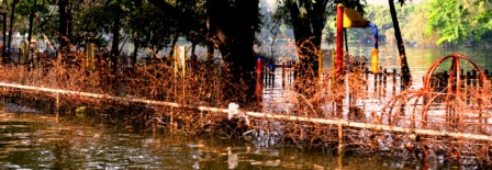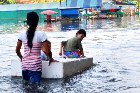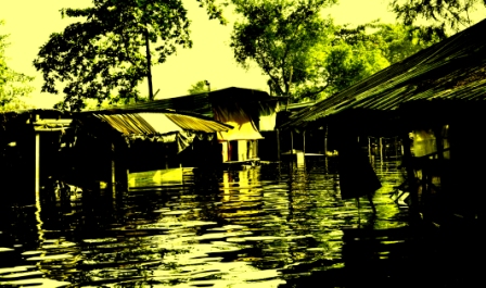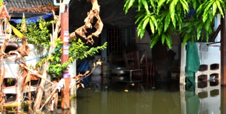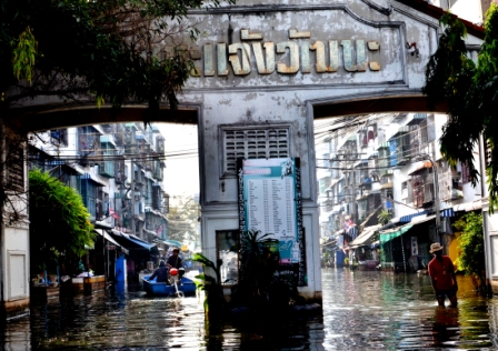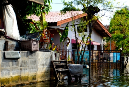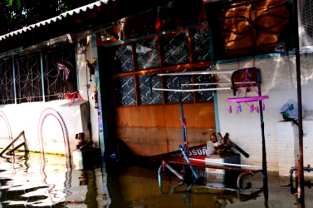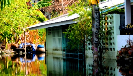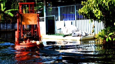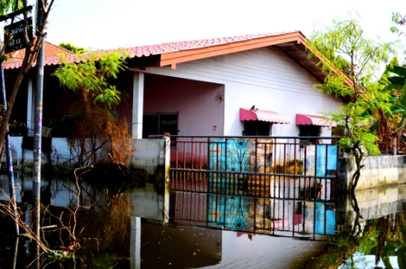 ณ.บ้านเลขที่ 1 แขวงดอนเมือง เขตดอนเมือง วันนี้น้ำทะเลหนุนสูงสุด ได้ฤกษ์เอาเรือลง ออกจากบ้านที่มีแต่น้ำเต็มไปหมด