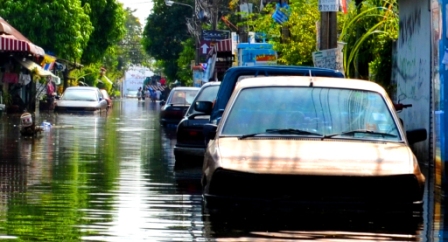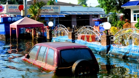 แยกเข้าซอยมา โอ..รถโดนน้ำท่วมเต็มไปหมดเลย สงสัยหมู่บ้านนี้มองโลกในแง่ดีมากๆ