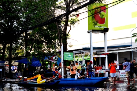 เก็บมาเรื่อยๆ จากนี้ไป Big C ไม่มีรถทหารวิ่งเพราะน้ำลึกมาก เรือรับจ้างคนละ 100 บาทขาดตัว