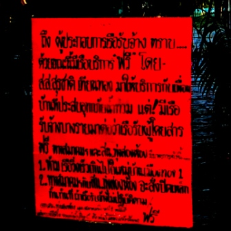 อันนี้เป็นป้ายยืนยันว่า เรือบริการนั่งฟรี ห้ามเข้ามาวิ่ง และถ้าเป็นเรือรับจ้างข้างนอกเข้ามาก็จะโดนเร่งครื่องเบียดให้ล่มเลย จบข่าว