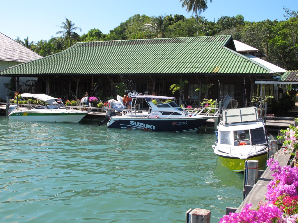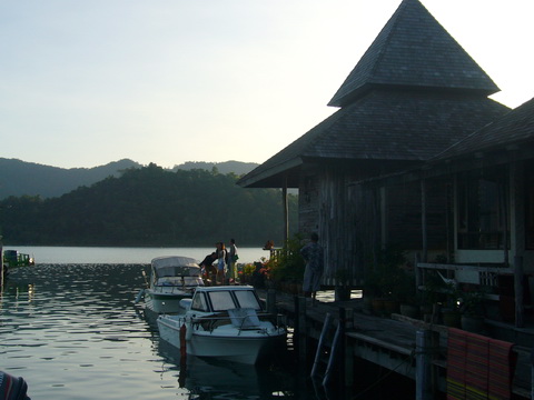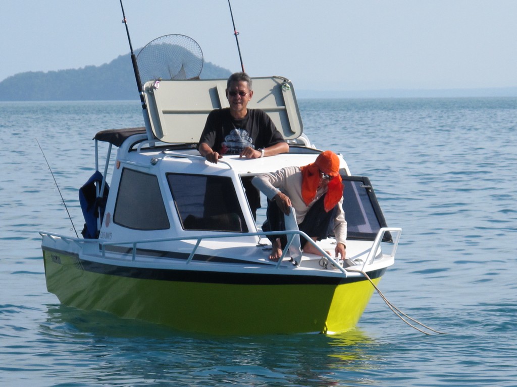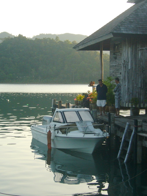 จอดเรือหน้าร้าน+อาหารเที่ยง / ก่อนขับเรือเล่น+ไปตกปลา