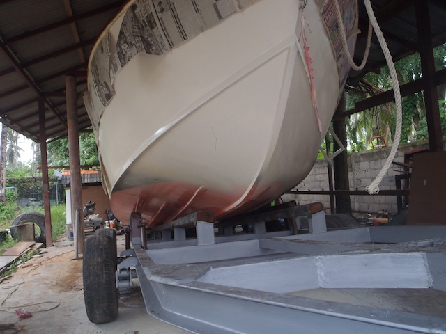 มา Update ครับ เริ่เอาเรือตั้งบนเทรลเลอร์เพื่อติดตั้งเพลา
