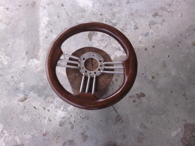 พวงมาลัยครับตัดเองจากไม้มะค่าโมงทั้งชิ้น
