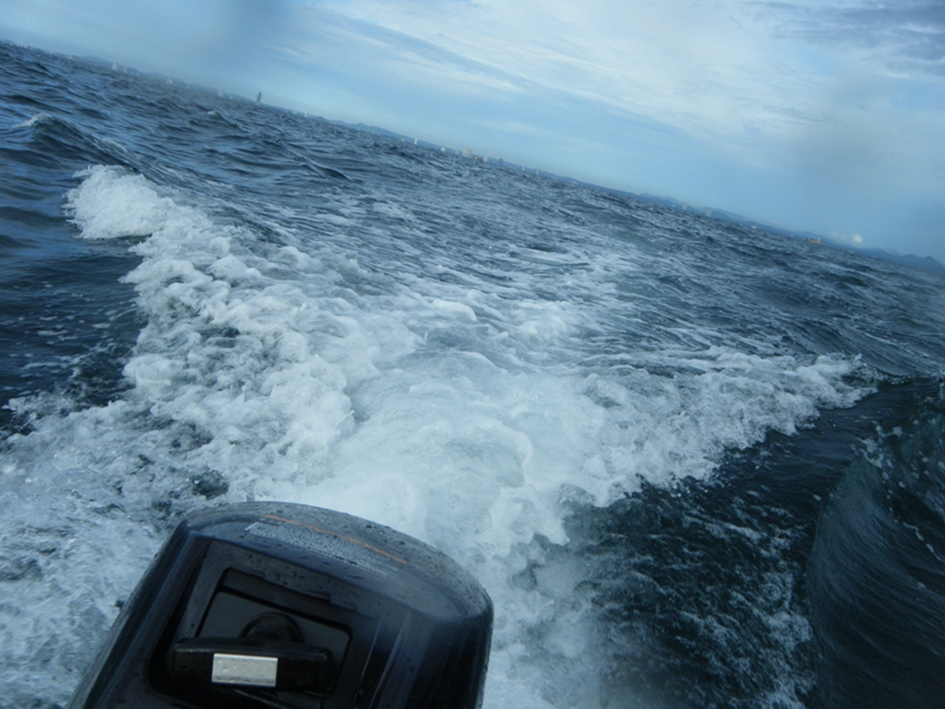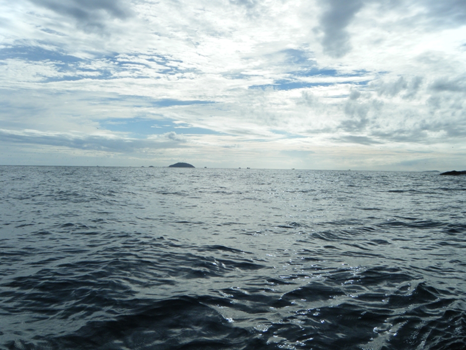 ใช้เวลา35นาทีก็มาถึงเกาะรางเกวียน...ห่างจากฝั่งประมาณ12กม. เครื่องเริ่มมีอาการสะดุดเป็นระยะ(ช่างโสมันเช็คเครื่องยังไงหว่า!) james dondรีบตรวจดูตามตะเข็บรอยต่อที่ปะกาวใหม่ทั้งลำ..รวมถึงแท่นเครื่องด้วย ปรากฏว่าแข็งแรงดี ส่วนตัวของjames dondเองก็ยังไม่มีอาการผิดปกติอะไร...ร่างกายคงเริ่มจะเข้าที่แล้ว! ( ที่เห็นทางขวามือคือเกาะล้าน)
