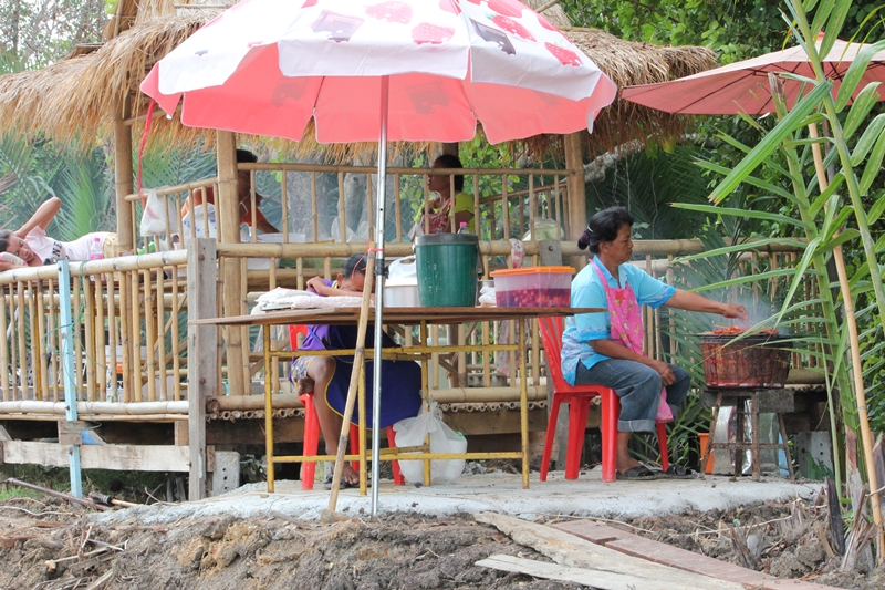 แถมอีกหน่อย งานนี้ไช่ว่าไปตัวเปล่าแล้วจะอด เพราะว่าน้าสิทธิแกเอาคารมดีดีหน้าตาหล่อๆไปหลอกแม่ค้าส้มตำไก่ย่างให้มาเปิดร้านขายในงาน ลาบ น้ำตก พร้อมพรั่ง