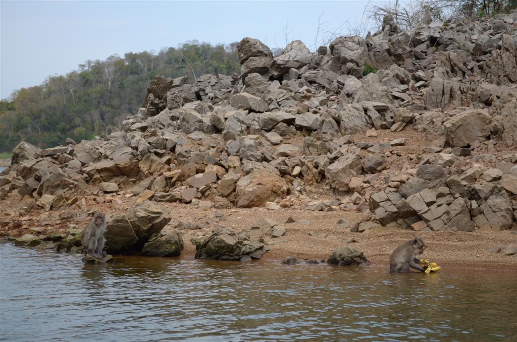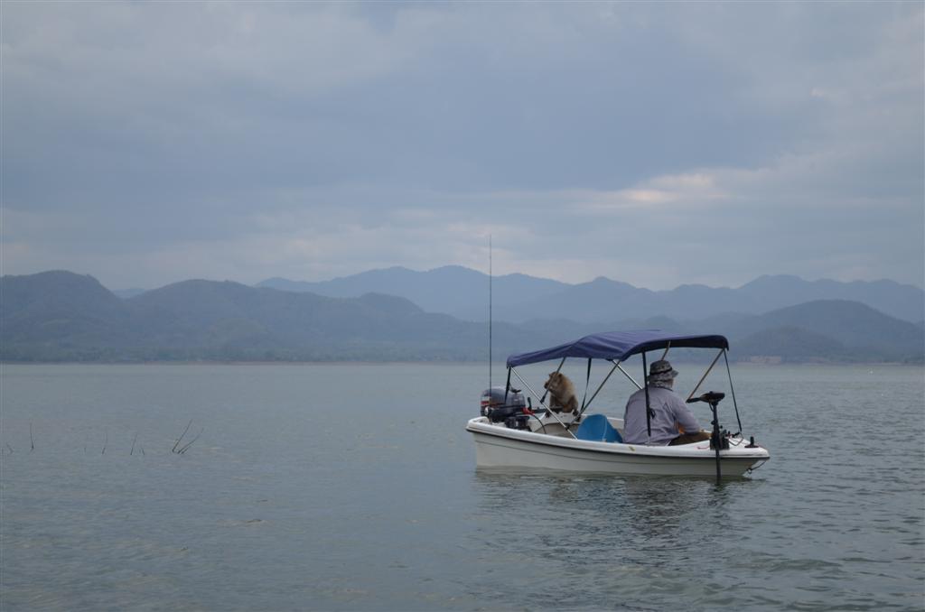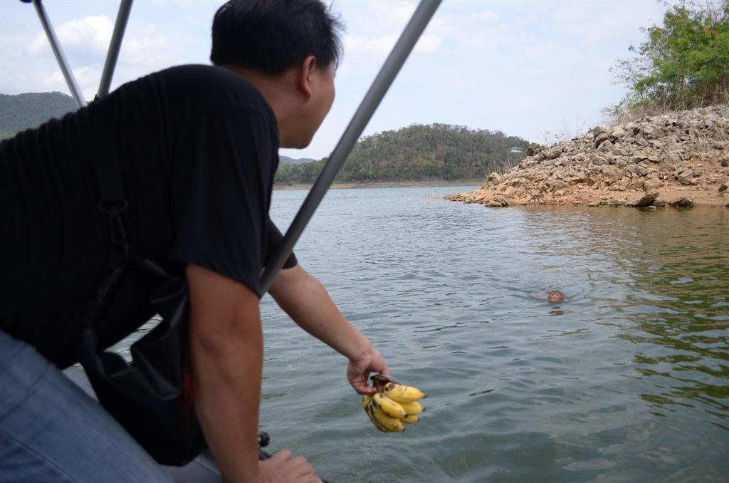 น้าต้องเอากล้วยไปให้ลิงกิน ลิงเลยว่ายน้ำมากินที่เรือเลยครับ.....