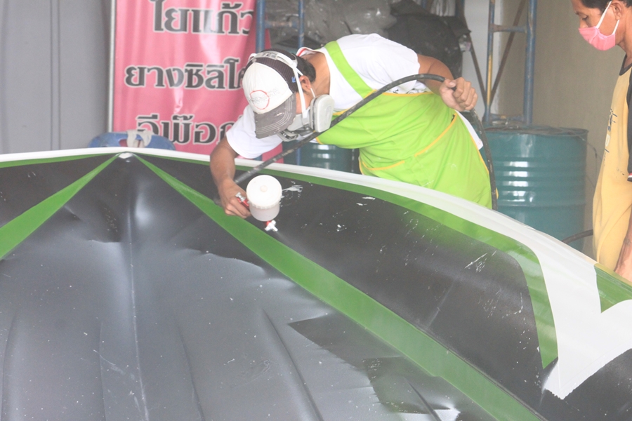 พ่นทับด้วยเจลโค้ทสีขาวอีก 1 ครั้ง ใกล้จะเสร็จแล้วครับ