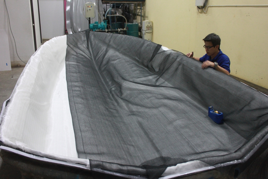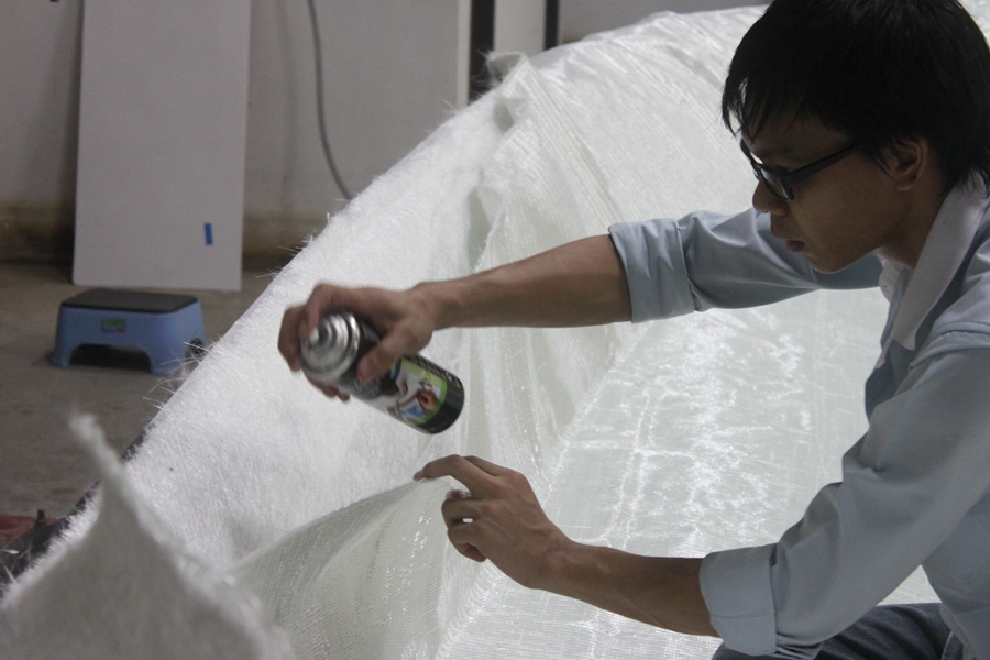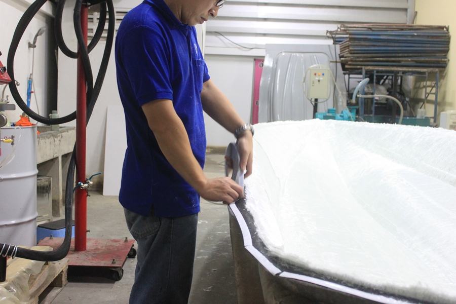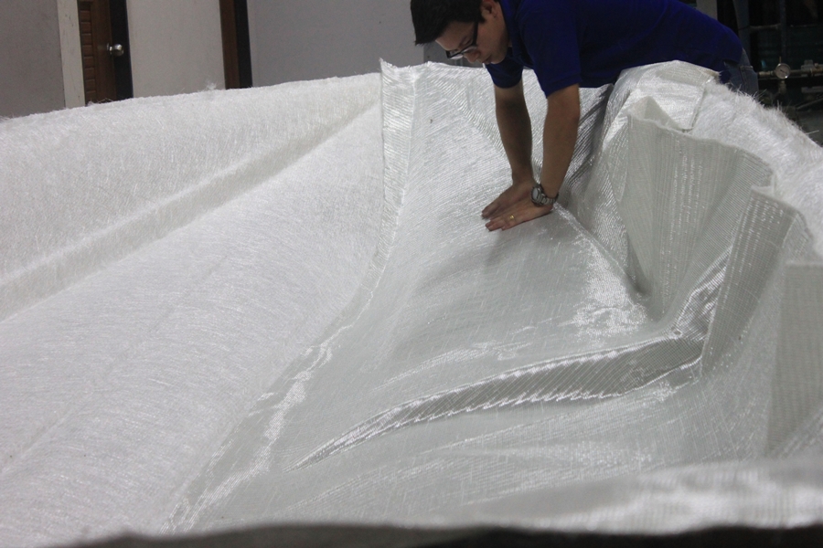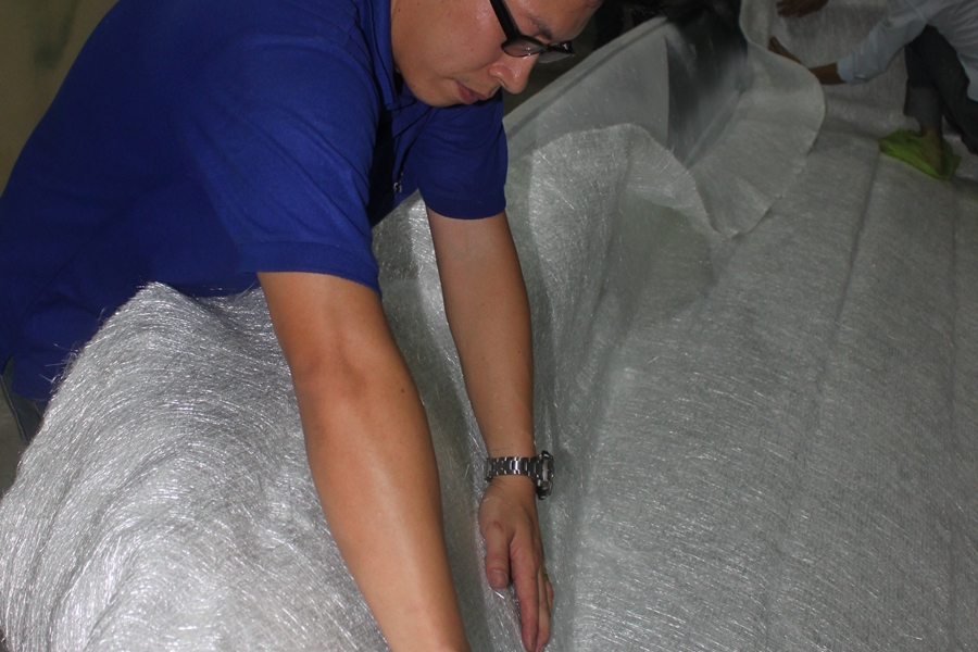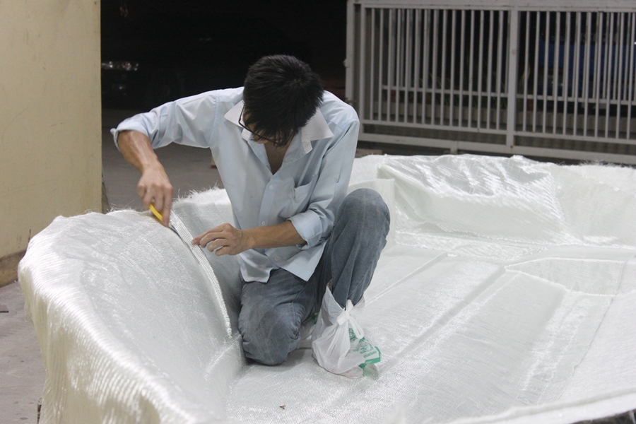 ตรงไหนที่ใยแก้วทับซ้อนกัน ต้องทำการตัดแต่งนิดนึงเพื่อความสวยงาม และความหนาที่สม่ำเสมอ