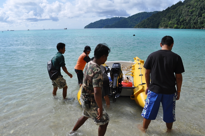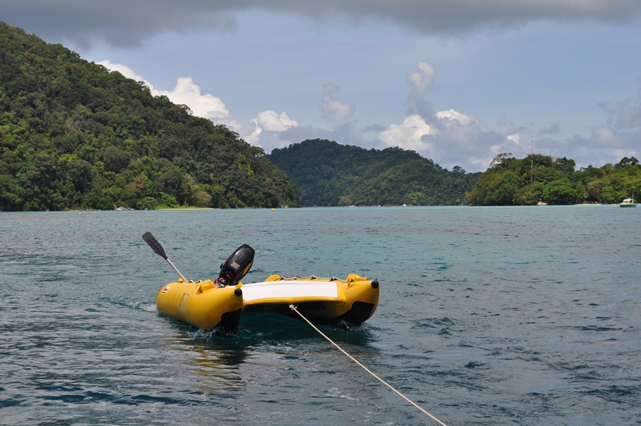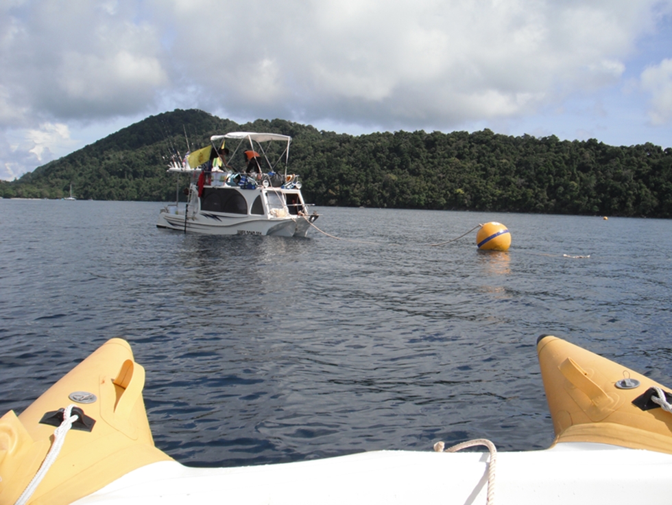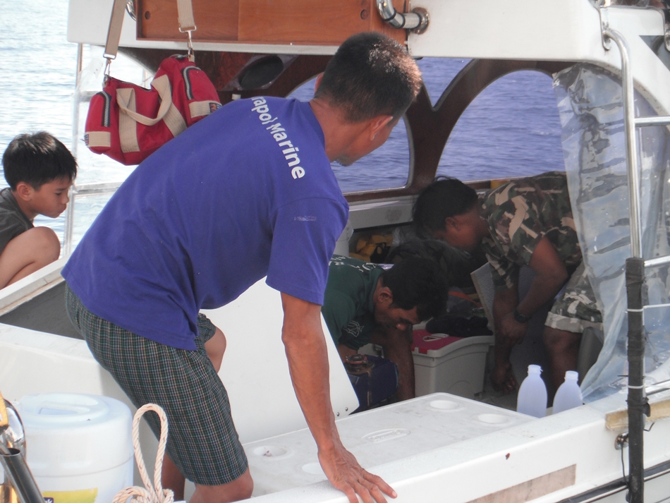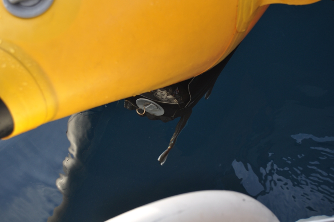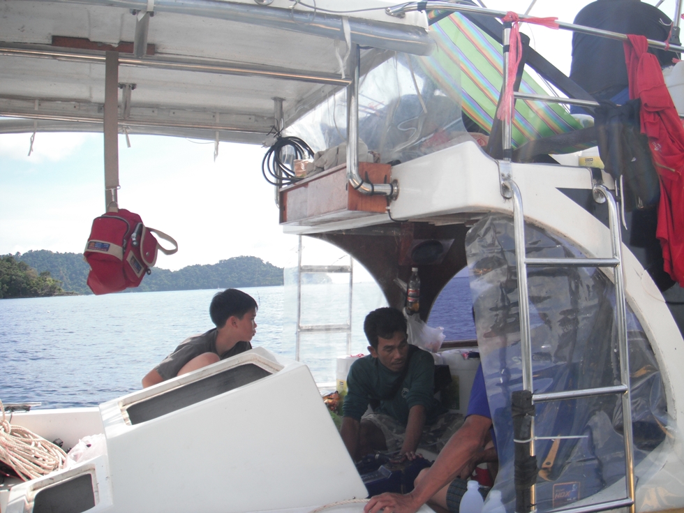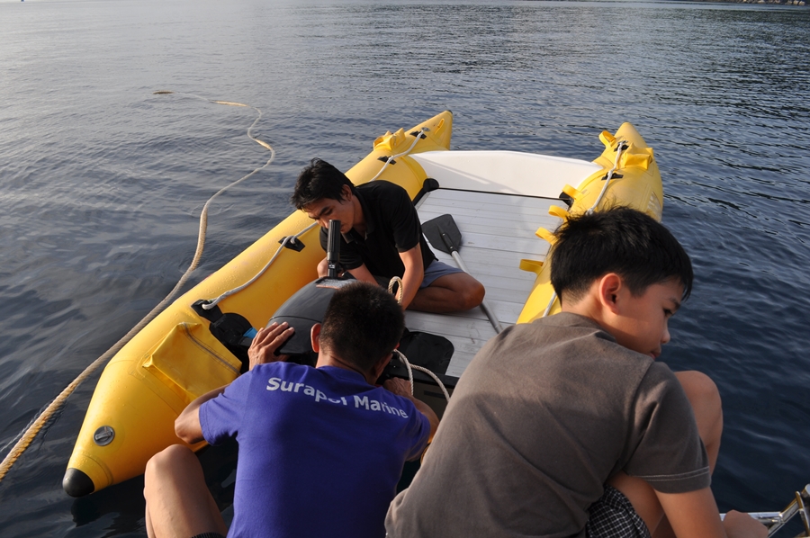 หลังจากนำช่างมาส่งที่เรือ james dondก็ขับเรือยางเหลืองตรวจสภาพภายนอกของเรือjames dond001!!