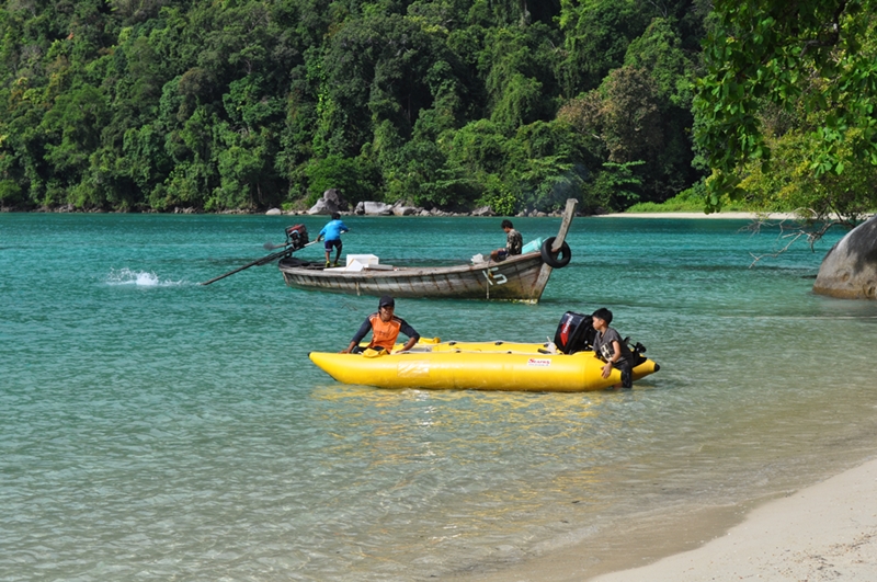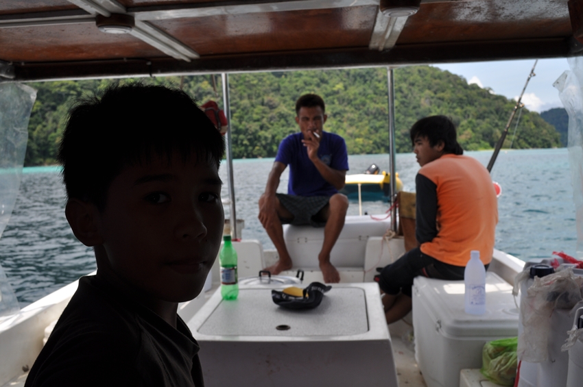 พร้อมกับเบี่ยงเบนความสนใจไปที่เกมส์ตกปลา..โดยกล่าวว่า"เราไปหาตกปลาตามซั้งกันเถอะ..ได้ข่าวว่าปลาทูแขกกำลังเข้า ต้องมีปลาเกมส์ใหญ่ๆให้เราตกแน่ๆเลย" ว่าแล้วก็สั่งให้ไต๋เอกเดินเครืองเต็มกำลัง มุ่งหน้าสู่ซั้งซึ่งอยู่รายรอบหมู่เกาะสุรินทร์..ที่ชาวประมงได้ทำเอาไว้!(ทำด้วยทางมะพร้าว ใบปาล์มหรือเศษอวน) ซึ่งอยู่นอกเขตอนุรักษ์ของอุทยาน! โดยลากเรือยางเหลือง..พร้อมติดเครื่องไปด้วย! เผื่อเจอฝูงปลาจะได้ลงเรือยางเหลือง..ทรอลลิ่ง..ป๊อปหรือจิ๊กทันที!