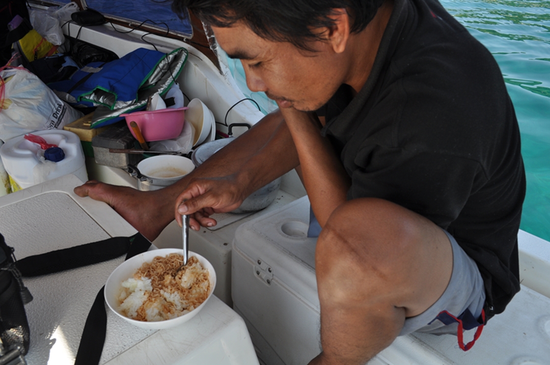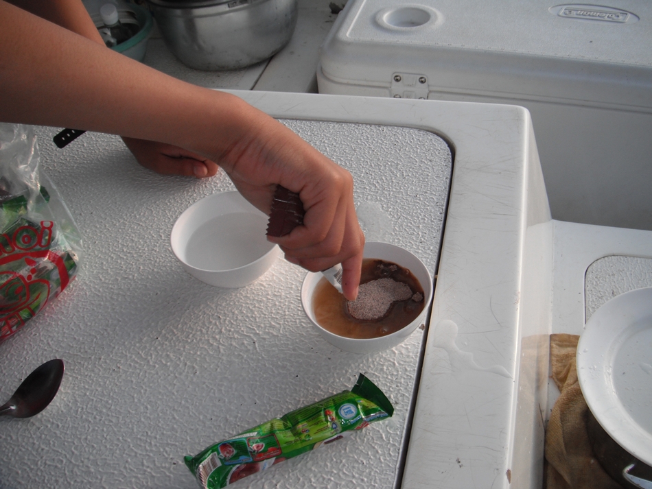 เราต้องเปลี่ยนแผนโดยเก็บข้าวไว้หุงมื้อเย็น ส่วนมื้อเช้ากินกาแฟ..ไมโลและมาม่ารองท้องไปก่อน! แล้วไปหาข้าวเช้ากิน...ตอนเที่ยงที่เกาะสี่กัน!