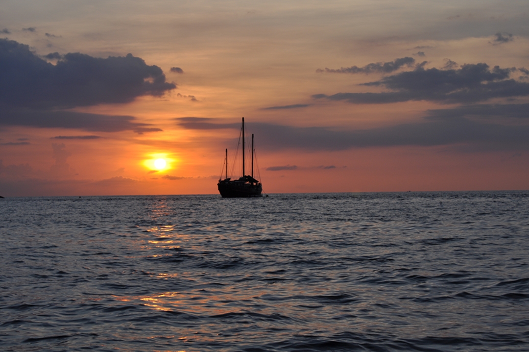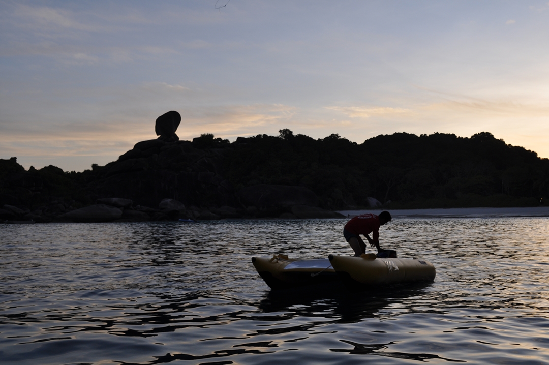 เราดำน้ำอยู่นานโข จนjames dondจูเนียร์เริ่มรู้สึกคันจึงชวนกันขึ้นจากน้ำ เราสังเกตุเห็นนักท่องเที่ยวยังคงอยู่ที่หินเรือใบ คงจะรอดูพระอาทิตย์ลาลับจากขอบฟ้า แต่เวลาเดินลงมาจะลำบากและอันตรายมาก...ต้องระมัดระวังเป็นพิเศษ!