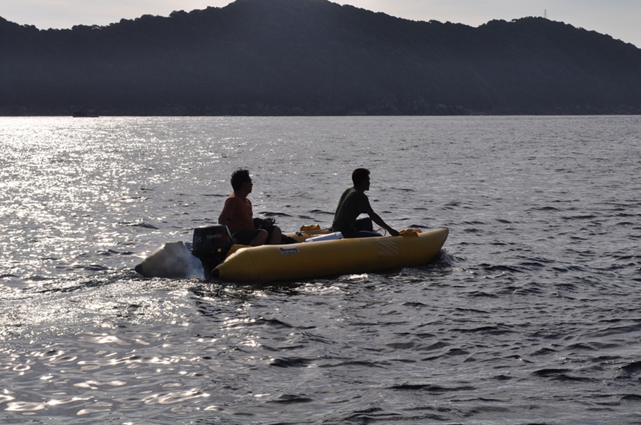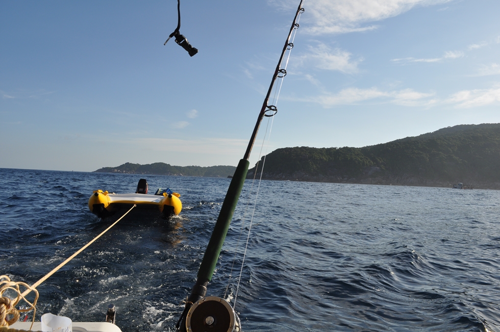 เพียง15นาทีเราได้ปลาทูแขกนับร้อยตัว พอเป็นอาหารคนและเหยื่อปลาแล้ว james dond ก็กลับไปรับลูกๆเพื่อนั่งเรือยางเหลืองล่วงหน้าไปที่อ่าวหน้าเกาะสี่!