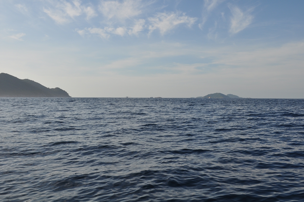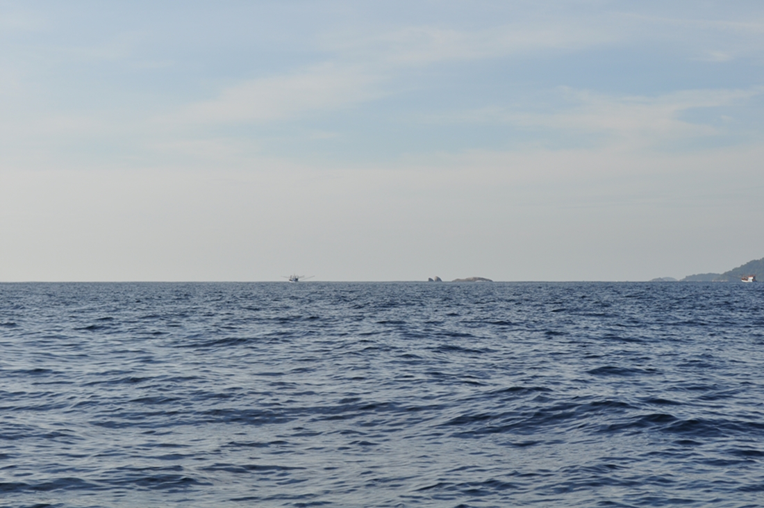 7.30น. เราเดินทางออกจากอ่าวเกือก...เกาะแปด เพื่อมุ่งหน้าไปตกปลาที่หมายซั้ง..ซึ่งไต๋อ้วนได้ให้ไว้! james dond หันหลังมองกลับไปทางอ่าวเกือกม้าที่เพิ่งจากมา ลาก่อนหินเรือใบ....วีรบุรุษมนุษย์ต่างดาวในฝันของjames dond!!!