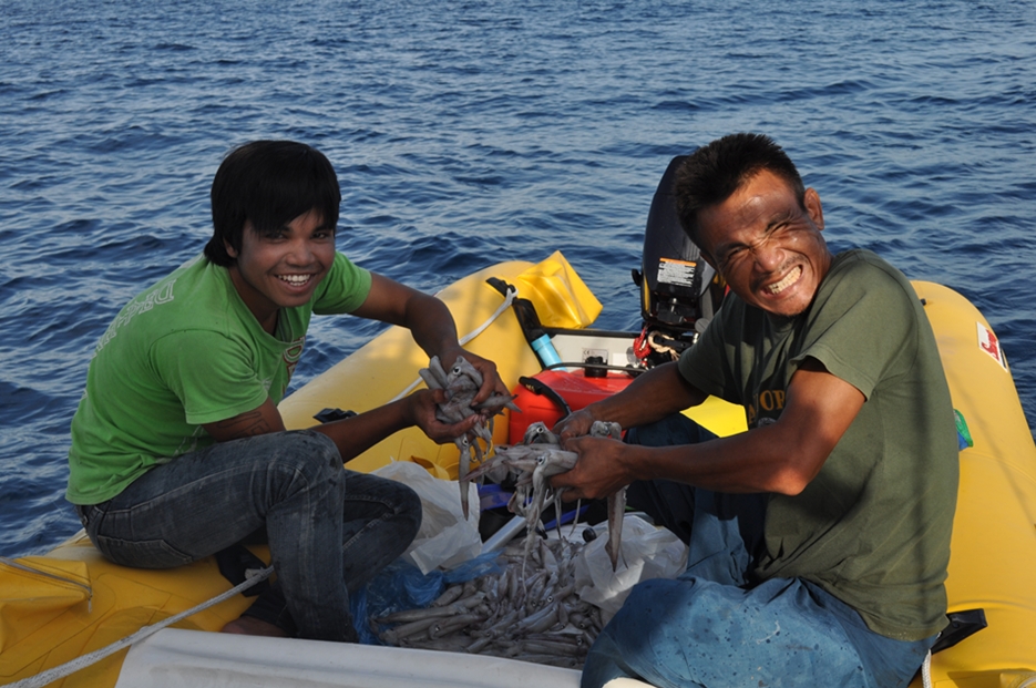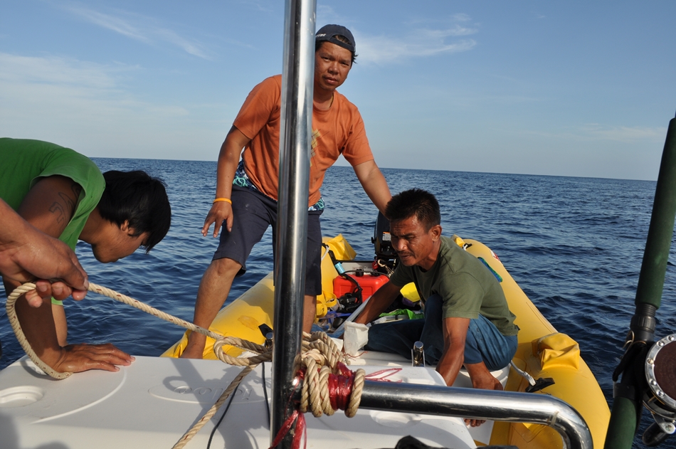james dondและช่างโสเตรียมตัวลงเรือยาง...เพื่อเข้าเทียบเรือไดน์หมึกลำที่ใกล้ที่สุด พอเข้าใกล้ระยะห้าสิบเมตร ช่างโสก็พูดขึ้นว่า "ถ้าขอซื้อแล้วไม่ขาย...ก็ต้องขอเปล่าๆ แต่ถ้าขอเปล่าๆแล้วไม่ให้....ก็ต้องกลับบ้านมือเปล่าๆ" แหม่!...พูดอีกก็ถูกอีกครับช่างโส!!อิอิอิ