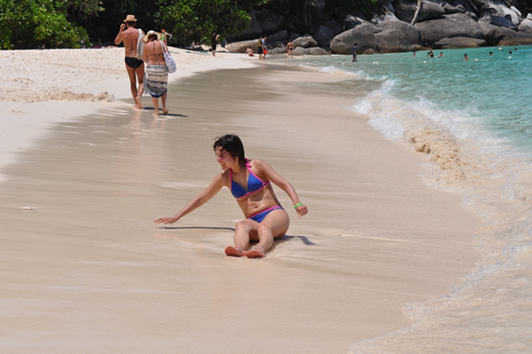 หลังจากนั้นก็เดินเล่นบนหาดทรายที่ขาวละเอียด...ราวผงคอฟฟี่เมตมิปาน เคยมีเรื่องเล่าว่า มีนักท่องเที่ยวคนหนึ่ง..เก็บทรายบนเกาะสี่ใส่ขวดแก้วไว้เป็นที่ระลึก แล้วเพื่อนร่วมทริปอีกคนหนึ่งก็นำไปชงกับกาแฟ ด้วยความเข้าใจผิดคิดว่าเป็นคอฟฟี่เมต เรื่องนี้จริงเท็จอย่างไรไม่ทราบ แต่ก็ได้ยินเล่ากันมา20กว่าปีแล้ว!อิอิอิ!