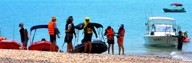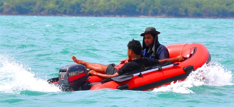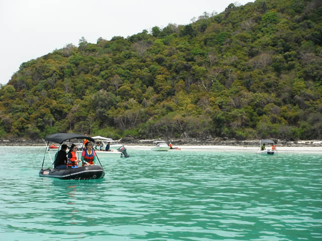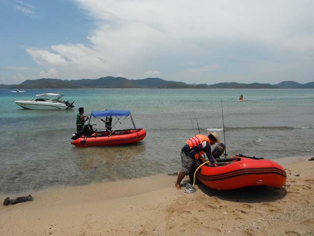 น้าอดุลย์รัตน์ก็เป็นเรือยางลำแรกๆที่มาถึงก่อนใคร ไม่เบาเลย 360+Hondex15hp(ผมหมายถึงเฉพาะน้ำหนักเรือ+เครื่องนะ) ลำสีแดงๆข้างหลังนั่นของน้ายศก็ 320+HONDEX เหมือนกัน ที่เกาะครามน้อยนี่เราจะมาแวะทานอาหารกลางวันกันซึ่งได้รับความเอื้อเฟื้อจัดเตรียมอาหารและน้ำดื่มครบครันมากๆจากน้าอุดมและทีมงานอีกแล้วไม่รู้จะขอบคุณยังไงดีสำหรับน้ำใจของน้าอุดม.......