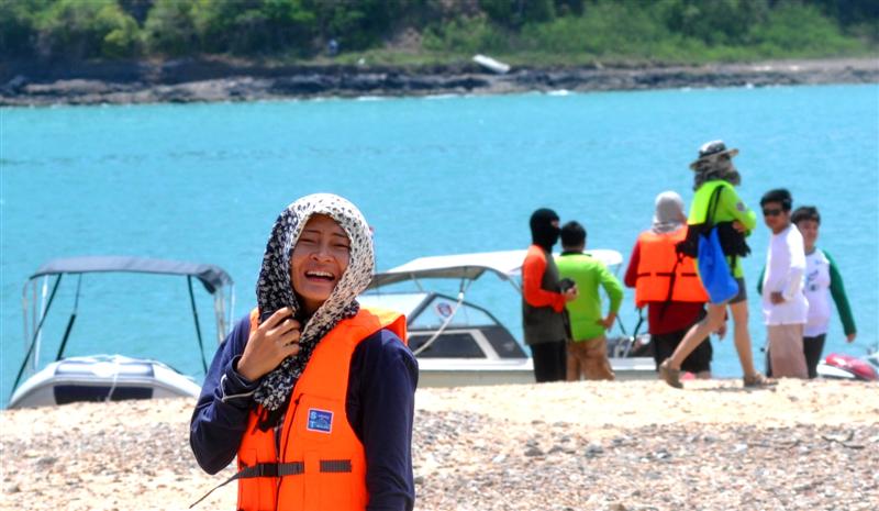 น้าอดุลย์รัตน์ ดูอารมณ์ดีเป็นพิเศษ หลังจากเคร่งเครียดกับการขับเรือมาคนเดียวตั้งไกล