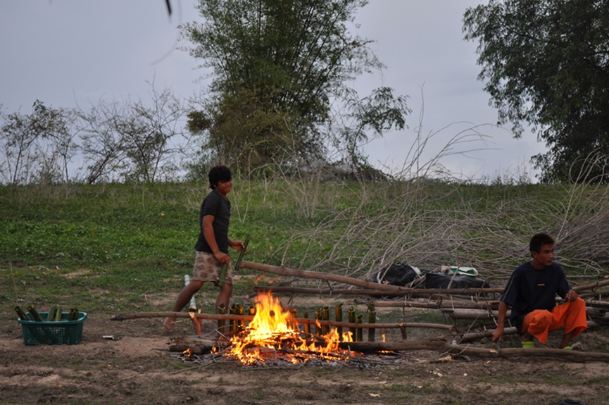 ตอกหลักทำราวพิงกระบอกข้าวหลาม ค่อยๆสุมไฟอ่อนๆ!!