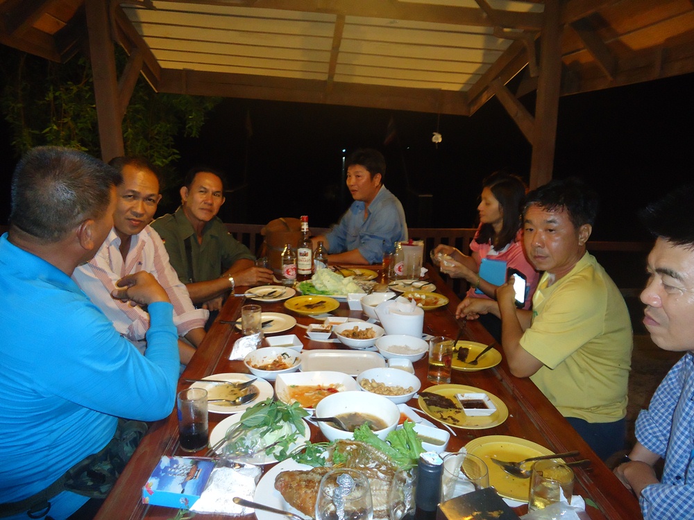 ก็สังสรรค์กันตามประสาชาวเรือ เย็นนี้มีเสี่ยจังผู้สนใจเข้ากลุ่มมาดูงานด้วย