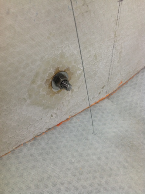 สรุปขั้นตอนคือ คว้านรูใหญ่ 20 มม. แล้วหยอดเรซิ่นหรืออีพอกซี่ ทิ้งให้แข็งแล้วก็เจาะรูด้วยดอกสว่านตามขนาดที่ต้องการ ข้อสังเกตอย่างหนึ่งคือ ถ้าหยอดรูด้วยเรซิ่น เรซิ่นก็จะเกาะแน่นอยู่เฉพาะส่วนที่คว้านเท่านั้น แต่ถ้าหยอดด้วยอีพอกซี่ นอกเหนือจากรูที่คว้านแล้วมันยังซึมไปยังเซลข้างๆ ด้วยครับ ผมว่ามันเพิ่มแรงยึดเกาะ(ผมคิดไปเองรึเปล่า) โดยเฉพาะส่วนที่ยึดน๊อตระหว่างส่วนหัวและส่วนท้าย ตามรูปข้างล่างครับ