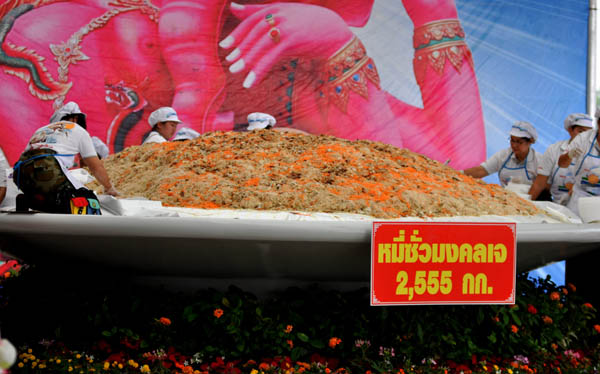หมี่สำหรับเลี้ยงคนในงานใส่จานยักษ์ น้ำหนักรวม 2555 กก. อร่อย มากๆ