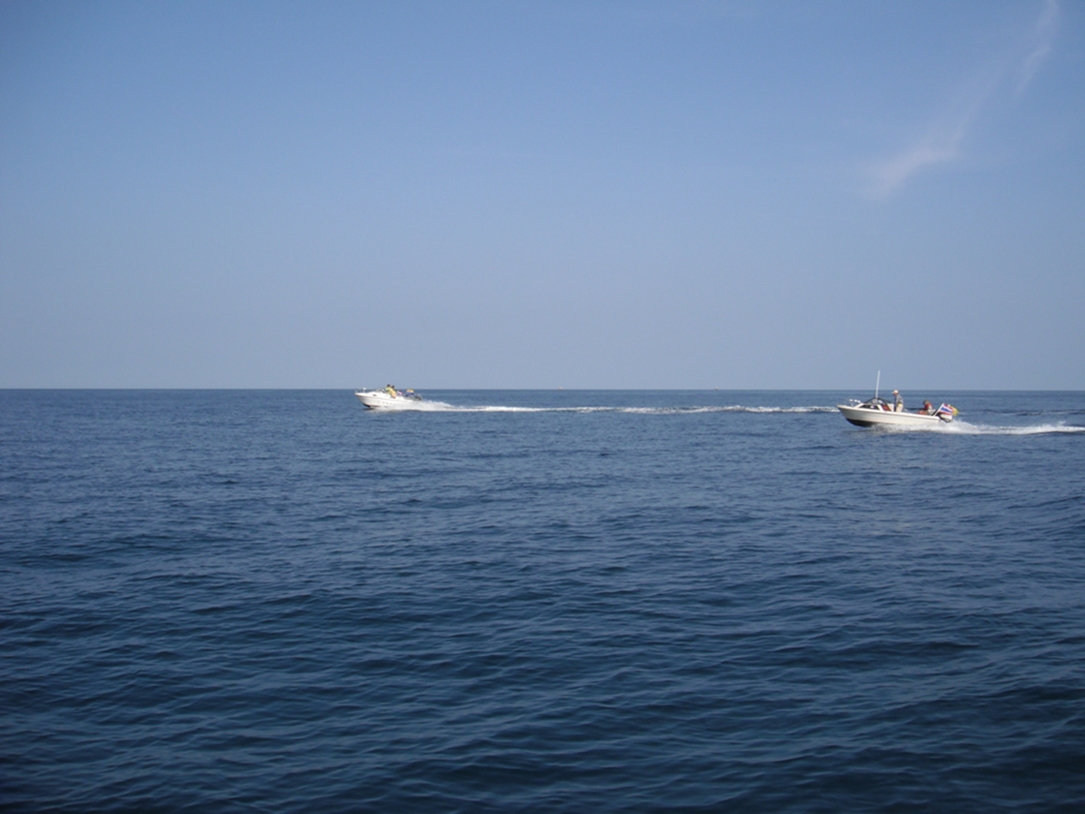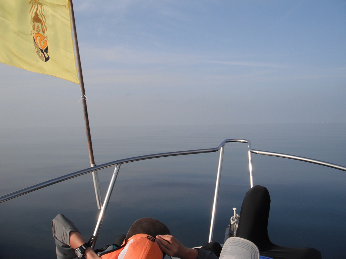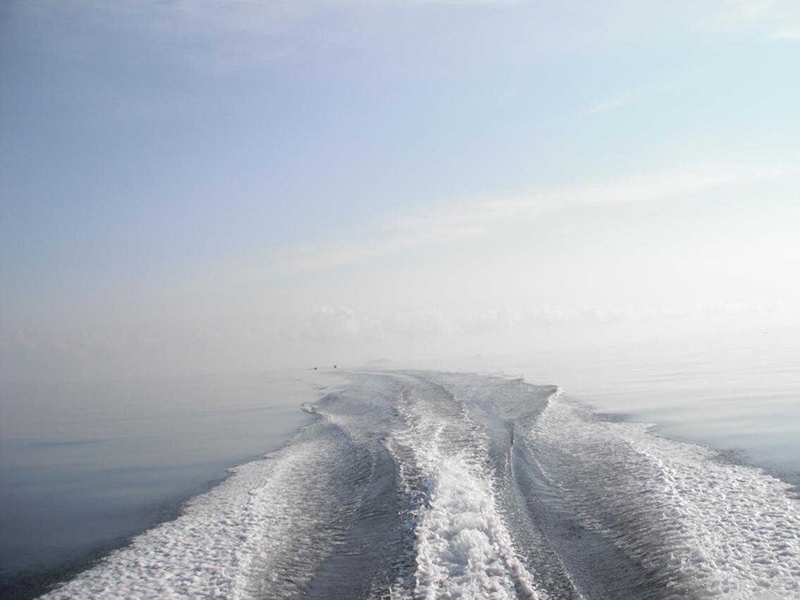 หลังจากชื่นชมความงามเกาะริ้นอยู่พักใหญ่ เราก็ออกเดินทางต่อ เพราะจุดหมายยังอยู่อีกไกล หมู่เรือของเราแล่นออกทางใต้ของเกาะริ้น อ้อมผ่าน"หินยักกระโดง" ที่ปัจจุบันยังเป็นเป้าซ้อมยิงปืนใหญ่ของกองทัพเรือ และระหว่างเกาะริ้นกับหินยักกระโดง ยังมีหินโสโครกที่โผล่ปริ่มน้ำ นักเดินเรือควรหลีกเลี่ยงการเดินเรือบริเวณนี้!!