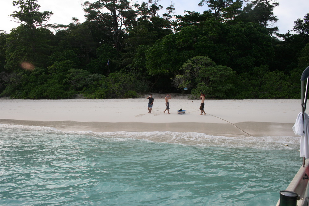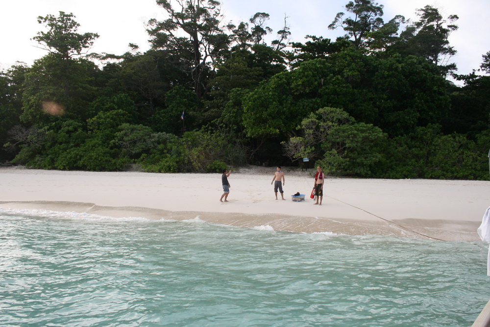 กำลังถอยเรือเข้าไปรับคนและของหน้าเกาะสี่ครับ