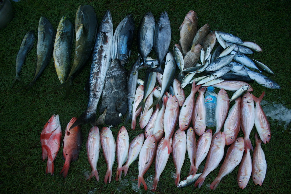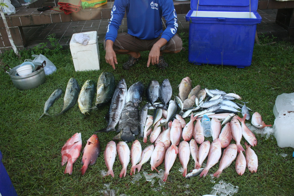 จากการทรอลิ่งเช้านี้ไม่เป็นชิ้นเป็นอัน มีแต่อีโต้มอญสลับกับปลาโอ ไซค์ไม่โต พอคลื่นเริ่มเบาเราก็เลยจอดจิ๊กและปล่อยสายหน้าดิน และแล้วน้าวิชัย ณ โรงเกลือ ที่แห้วมาตลอด(ไม่หลุด ก็ขาด)ก็ปลดล๊อคตัวเองสำเร็จด้วยอีโต้มอญไซค์เขื่องสองตัวรวด สลับกับทรายแดงยักษ์และเก๋า