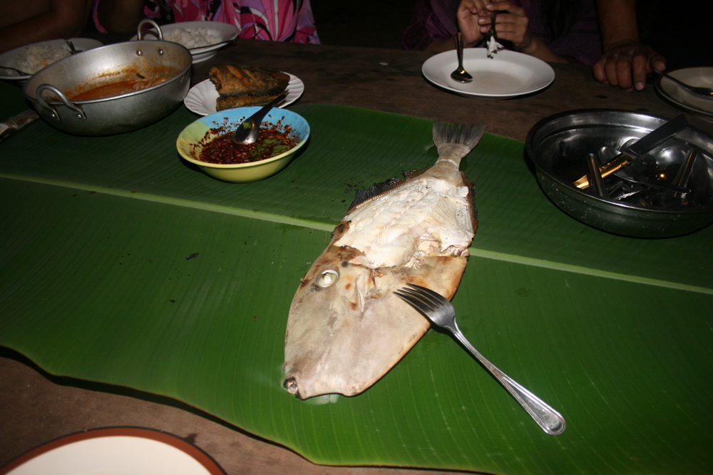 เมนูเด็ดในค่ำคืนนี้ประทับใจมาก ปลาวัวเผาครับ ผมเองก็เพิ่งได้ชิมปลาวัวตัวโตๆ ก็วันนี้แหล่ะ ต้องบอกว่าอร่อยสุดๆ นึกไม่ออกว่าปลาอะไรที่เผาแล้วจะอร่อยกว่าปลาวัว