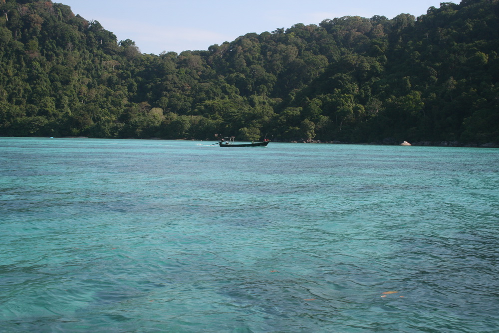 ทะเลด้านหน้าที่พัก สวยใสมองเห็นปะการังใต้น้ำชัดเจน อันดามันก็ยังเป็นอันดามันอยู่ดี ไม่ว่าสิมิลันหรือสุรินทร์