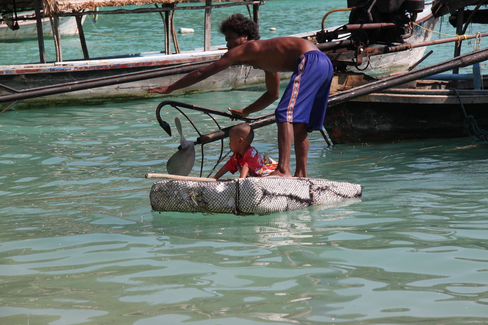 มอบของเล็กๆ น้อย ที่เราพอจะหาได้บนเกาะ เนื่องจากเสบียงเครื่องดื่มที่เราเตรียมไปจากฝั่ง เกลี้ยงหมดแล้ว