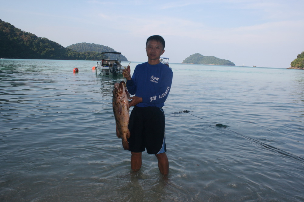 นักตกปลาของคณะใช้ความพยายามอย่างสูงในการตกปลา แต่ด้วยฝีมืออันน้อยนิด เราเลยได้มาหนึ่งตัวครับและมันจะกลายเป็นปลาลวกจิ้มในมื้อเย็น ส่วนหัวจะเป็นต้มส้มมะขามแขก โดยฝีมือของน้องทหารเรือ