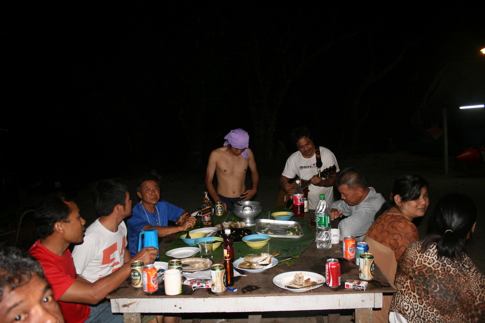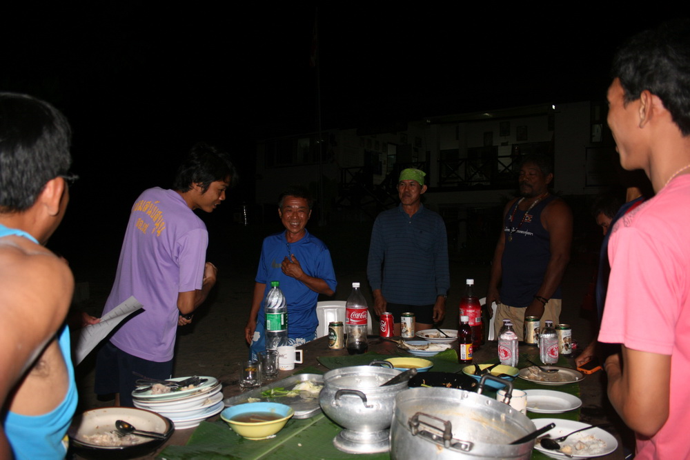 และแล้วดินเนอร์ เท้าเปล่าบนหาดทราย ภายใต้แสงจันทร์ ก็เริ่มขึ้น ถือเป็นงานขอบคุณและอำลา ของคณะเราและน้องๆ ทหารเรือ ที่คอยอำนวยความสะดวกและดูแลตลอดเวลาที่เกาะสุรินทร์ ก็มีพิธีการเล็กน้อย