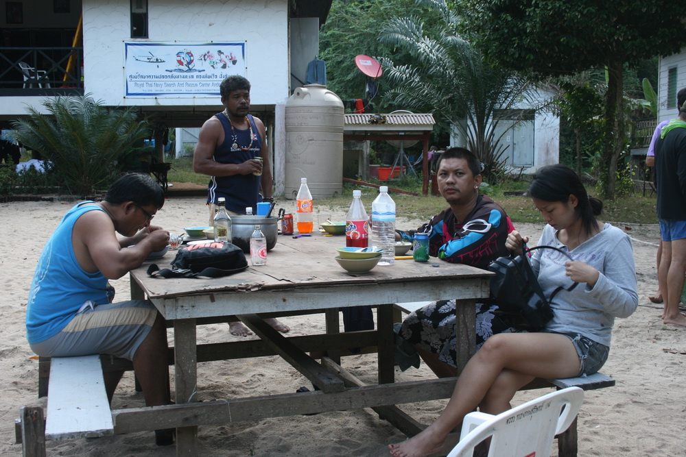 หลังจากดำน้ำดูปะการังจนพอใจ เราก็วิ่งเรือมาจอดที่ด้านหน้าที่ทำการอุทธยานเพื่อหาอาหารกลางวันรับประทานกัน