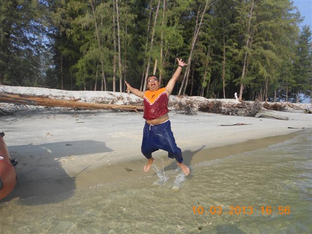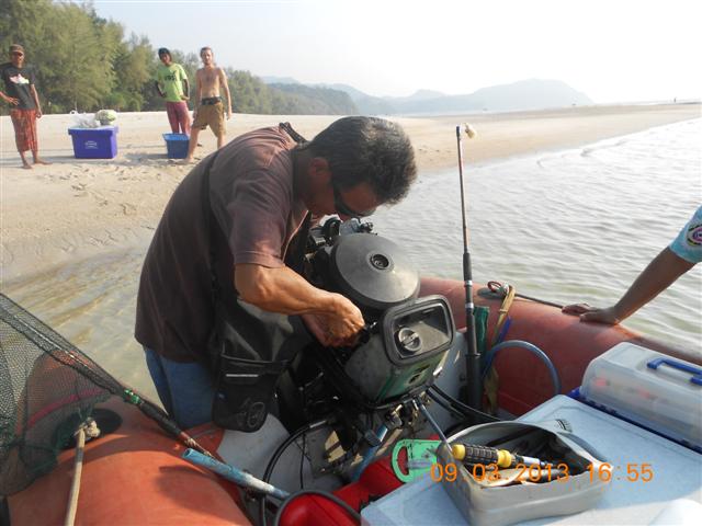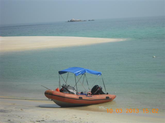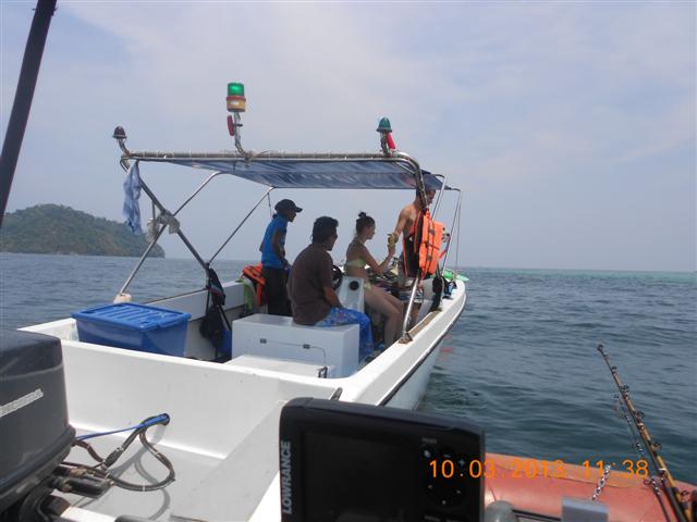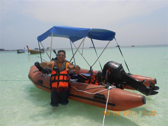 เรือผมมีปัญหานิดหน่อย ทำยังไงก็ไม่ขึ้นน้ำ น้าแป๊ะช่วยดูแลให้ไม่รู้จะเ็ช็คยังไงแล้ว ผลสุดท้ายลองยกขึ้นหาดถ่ายน้ำดู ปรากฏว่าพอดึงปลั๊กถ่ายน้ำท้ายเรือดู น้ำพุ่งยังกะท่อประปาแตก เลยได้ผลสรุปออกมาแว่ ที่ไม่ขึ้้นน้ำเพราะเรือรั่ว ห้าๆๆๆ เลยต้องวิ่งไปถ่ายน้ำไป ผมเองเกือบท้อแล้วว่าจะไม่ไปแหละ รออยู่ที่ตะรุเตาดีกว่ากลัวจะเป็นตัวถ่วงน้าำๆเค้า แต่ก็ได้รับแรงใจจาก น้าพงศธร น้ากำนัน น้าแป๊ะว่ามาแล้วต้องไปให้ถึงถ้ากลับก็กลับด้วยกัน เอาล่ะทีนี้เป็นไงเป็นกัน ลุยโลดดดด ถึงหลีเป๊ะก็ข้ามไปเกาะอาดัง นำเรือเกยตื้นเช็ดดู ปรกกฏว่าเป็นที่รอยต่อระหว่างไฟเบอร์กับยาง มันแตกที่ยางทำให้น้ำเข้าใต้ท้องเรือได้ เป็นสาเหตุให้เรือหนัก วิ่งไม่ขึ้น ดีที่ติดผ้าไปด้วย ใช้กาวยางปะก็ไม่ได้ผล วิ่งๆไปหลุด สุดท้ายเลยนึกถึงกาวตราช้าง เลยฝากเรือทัวร์หางยาววิ่งระหว่างเกาะอาดังกับเกาะหลีเป๊ะไปซื้อ หลอดละ ห้าสิบบาท ซื้อมาสองหลอด จัดการปะใหม่ ก็ทำให้วิ่งถึงฝั่งขากลับได้อย่างสบายๆ แต่มาถึงฝั่งเช็คดูก็ยังมีน้ำอยุ่ไม่มากเท่าเดิม ก็ต้องหากันต่อไป และต้องไปปะรอยเดิมให้แน่นกว่านี้อีก ต้องขอบคุณน้าแป๊ะ น้าพงศธร น้ากำนันครับ ที่คอยให้ความช่วยเหลือตลอดเวลาที่มีปัญหา