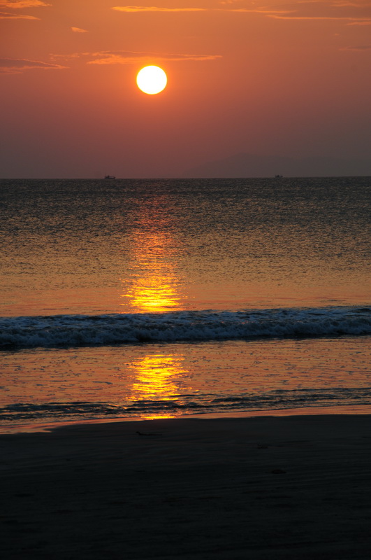 พระอาทิตย์ยามเย็นที่อ่าวใหญ่ เกาะพยาม สาดแสงสวยให้เราได้ชื่นชม พลบค่ำ ลาเจ้าของร้านกลับเรือ อีก18วัน ขากลับถ้ามีโอกาสจะแวะมาอีก