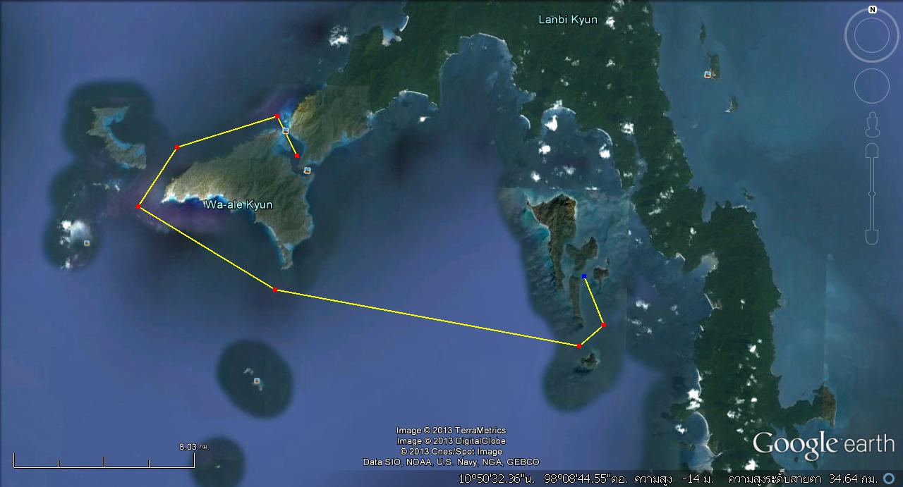 ทราบว่าที่เมืองระนองน่าจะมีพวกเรือใบนำเที่ยวของพวกฝรั่งอยู่บ้าง แต่ไม่ได้ไปกันหลายวันหรือเข้าไปใกล้เมืองมะริดเหมือนกับที่พวกผมไป น้าพยนต์ลองตรวจสอบดูอีกที ถ้าไม่เจอยังไงถามผมใหม่ แล้วผมจะติดต่อกับพรรคพวกที่ทราบเรื่องนี้
