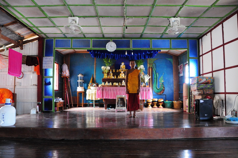 ทราบว่ามีวัดขนาดเล็กตั้งอยู่ จึงจะไปทำบุญ กราบพระพุทธรูปและพระสงฆ์ ปรากฏว่าท่านเจ้าอาวาสและพระลูกวัดได้รับการนิมนต์ไปทำกิจข้างนอก ได้พบกับเณรน้อยที่ช่วยเป็นธุระพาชมทั่ววัด รวมทั้งไขกุญแจพระอุโบสถให้พวกเราเข้าไปกราบพระประธาน