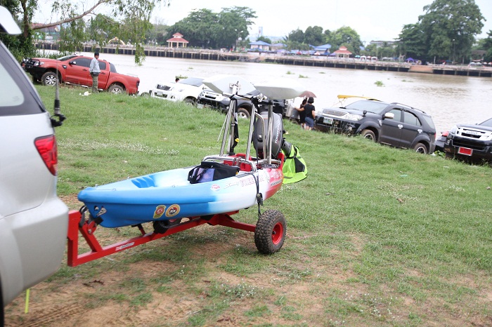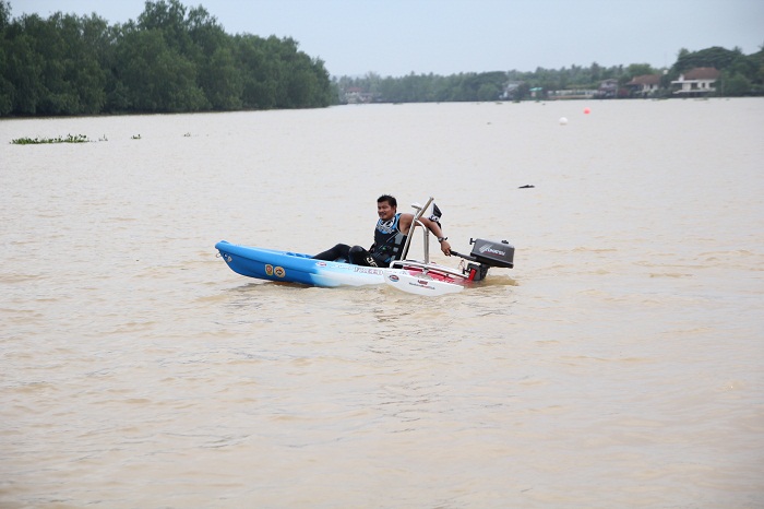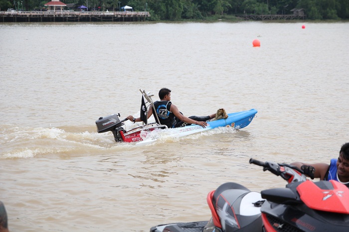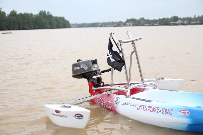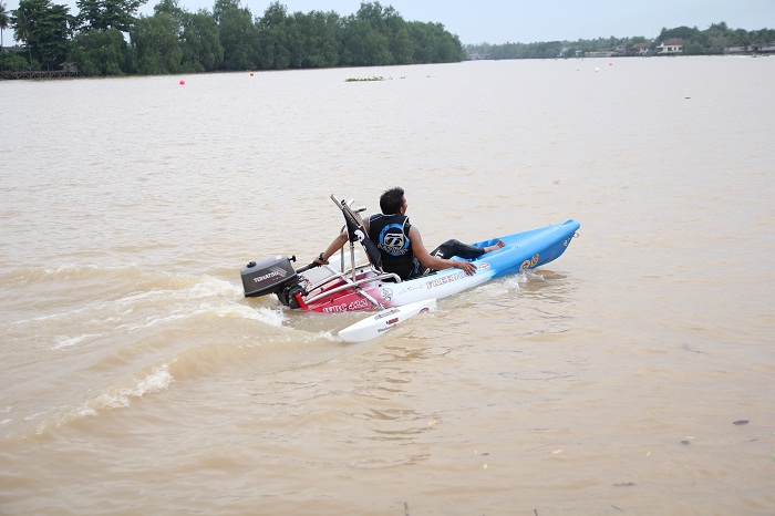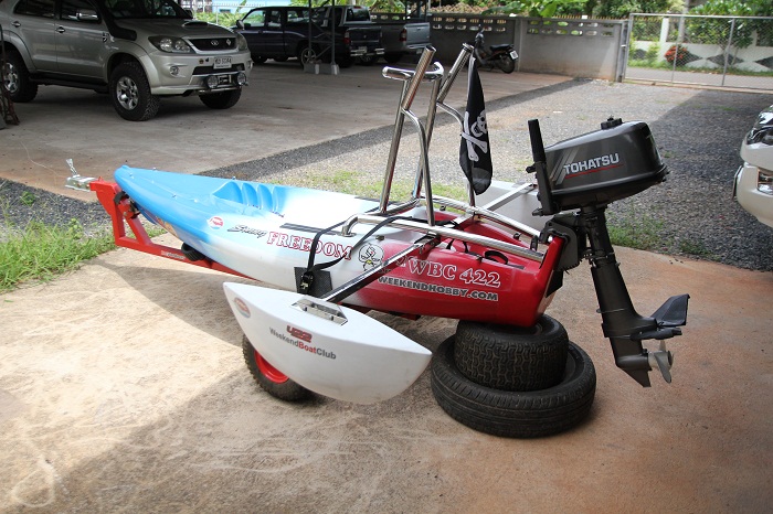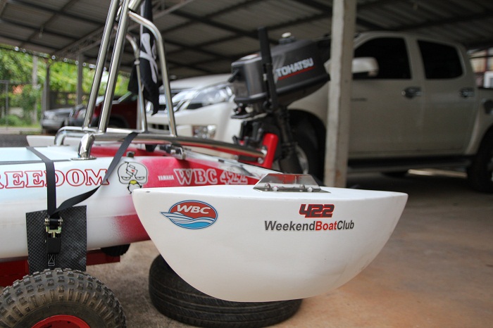 หลังจากที่ทดลองวิ่งอยู่สักพัก ก็พบว่าเรือไม่ขึ้นน้ำเลย สาเหตุก็อาจจะมาจากน้ำหนักของเครื่องที่มีมากกว่าเดิม รวมไปถึงอุปกรณ์ต่างทำให้เรือหนักไปทางท้ายเรือมาก วันนี้ผมแก้ไขด้วยการเอาถุงทรายมาวางไว้ส่วนหน้าของเรือทำให้เรือวิ่งดีขึ้นมาก