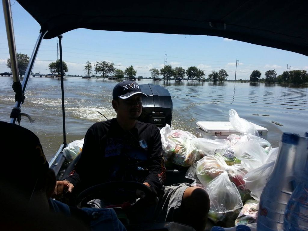 08.00 ถึงพื้นที่ อ.บางคล้า และนำเรือลงเพื่อจัดเตรียมของเข้าช่วยเหลือ