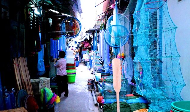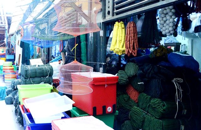 ร้านขายอุปกรณ์หาปลาในตลาด