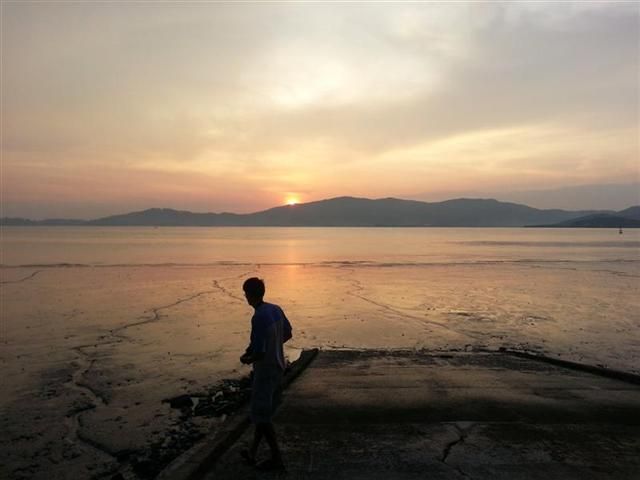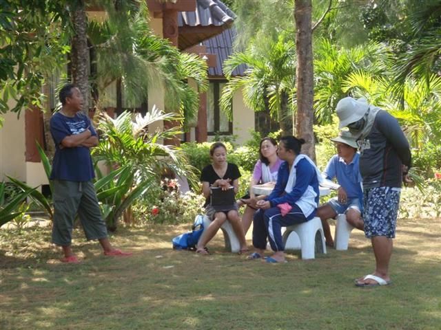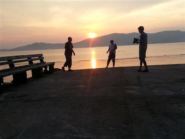 ตอนเช้าระหว่างรอน้ำขึ้น เพื่อที่จะเอาเรือลงน้ำ