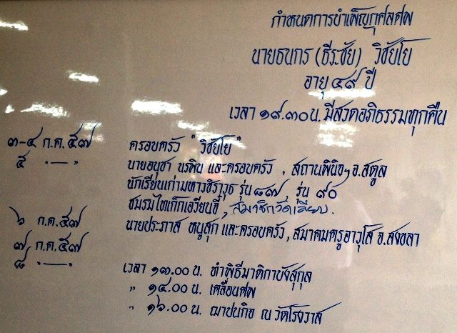 เพิ่งรู้ข่าววันนี้และเป็นวันสวดวันสุดท้ายเลยขออนญาติเป็นตัวแทนนำพวงหรีด WBC ไปงานที่วัดเลียบ จังหวัดสงขลา