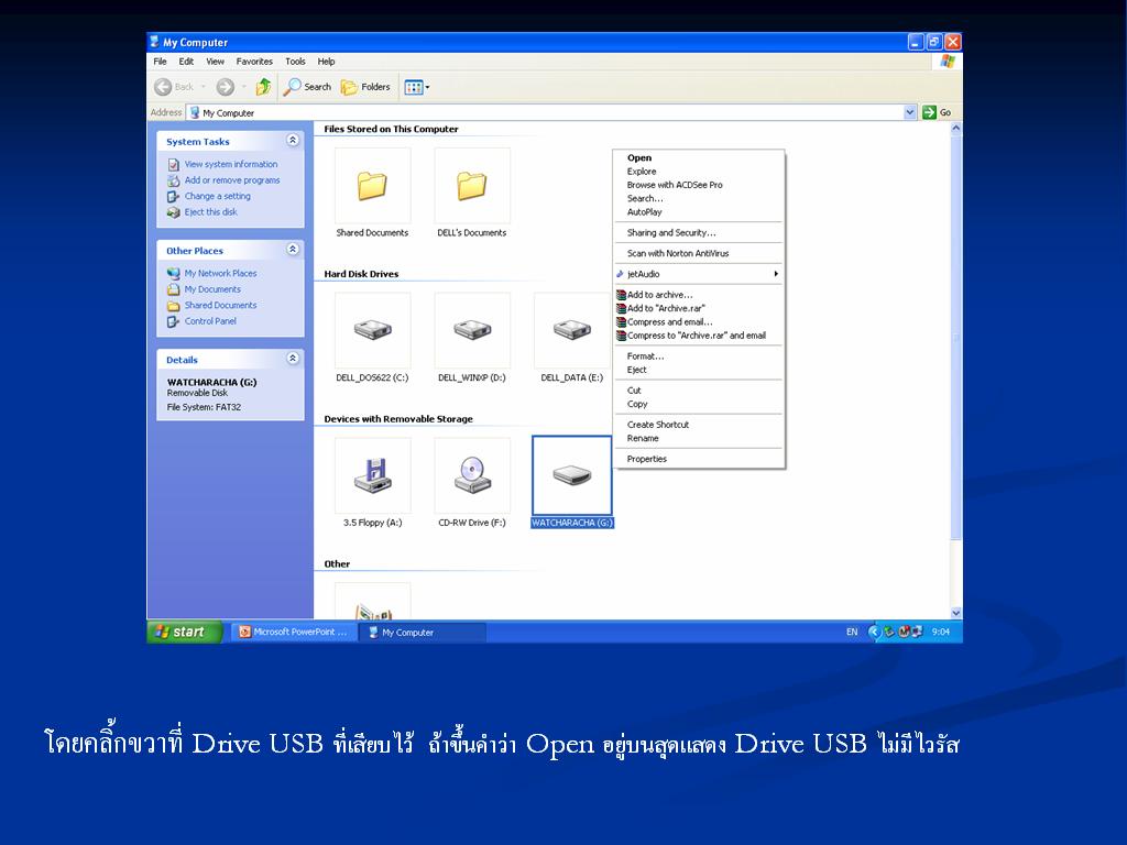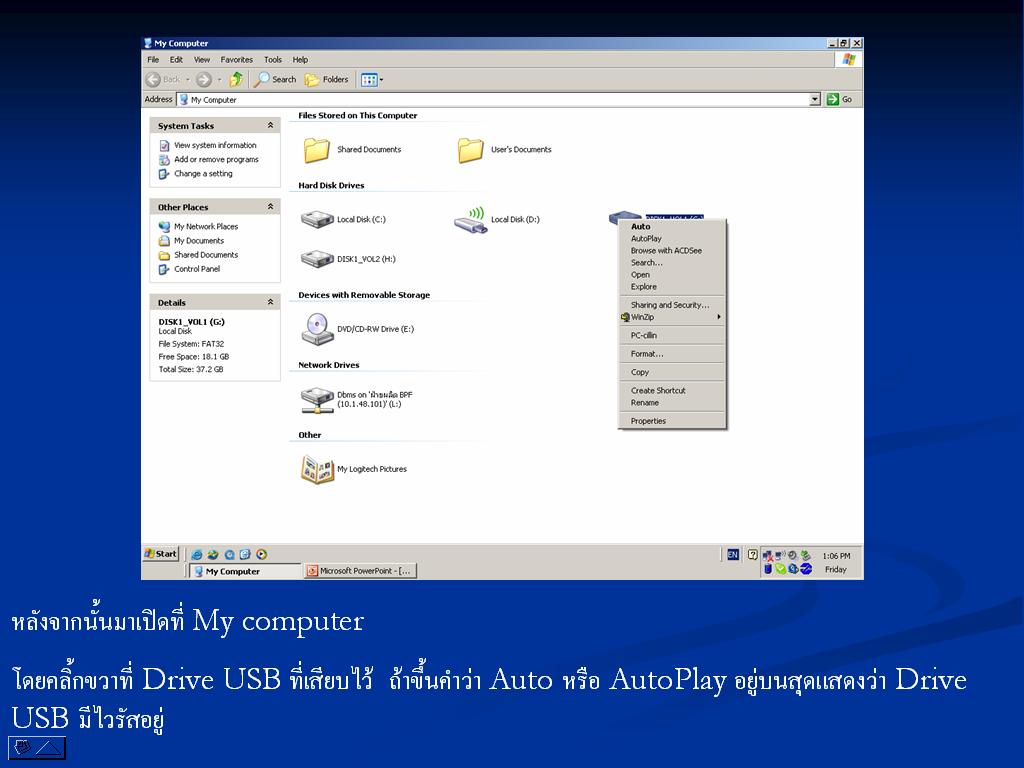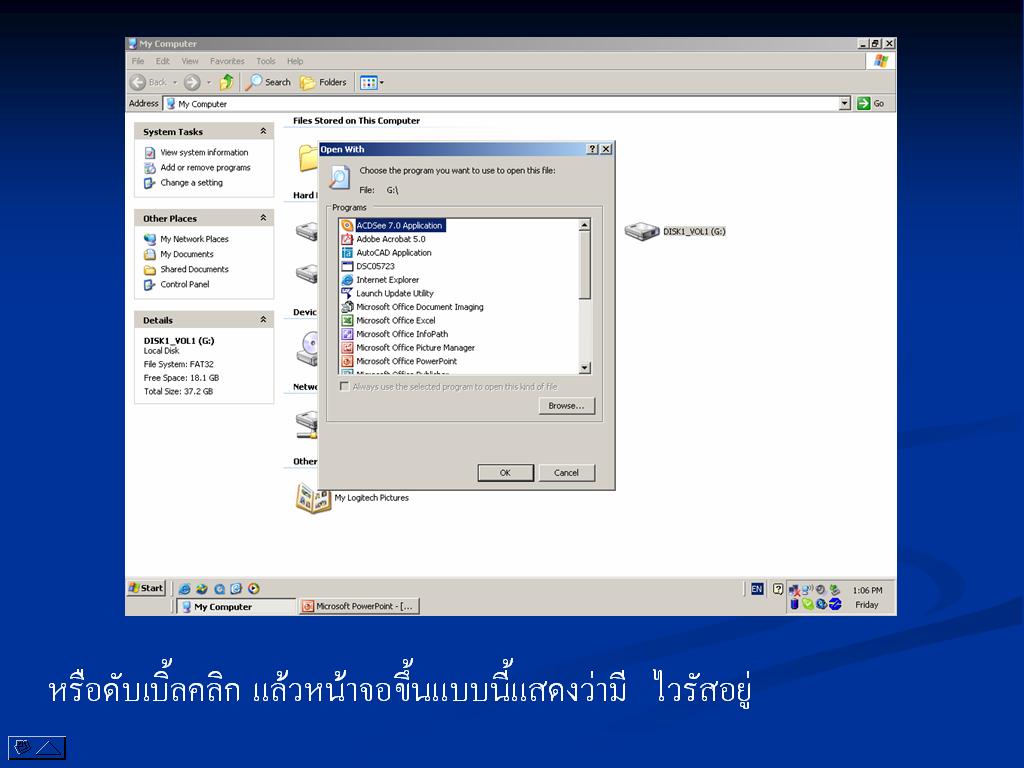 ตอนแรกเรามาเชคกันก่อนว่า ในแฮนดีไดร์ฟ(แฟลชไดร์ฟ)..ในการ์ดของกล้อง ของเรามีไวรัสหรือเปล่าครับ