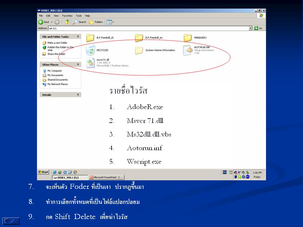 ขอนอกเรื่องเรือสักเรื่องนะครับ เพราะตอนนี้มีไวรัสบางตัวระบาดมากในแฮนดีไดร์ฟ(แฟลชไดร์ฟ)..ในการ์ดของกล้องยังมีเลย....พอนำมาใช้กับเครื่องคอม..เจ้าไวรัสตัวนี้จะเข้าไปทำลายไฟล์ในคอมเราไปเรื่อยๆ...จะเสียหายบานปลายไปกันใหญ่......พอมีวิธีจัดการกับมัน...จึงนำมาบอกต่อๆกันครับ